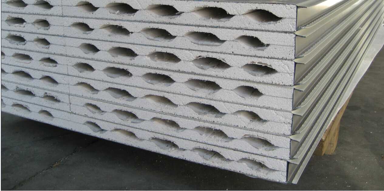 硫氧鎂夾芯板充分發(fā)揮了硫氧鎂復(fù)合材料的獨(dú)特性能,在防火,防潮,防脫膠,高強(qiáng)度,保溫,隔熱,吸音等方面有著顯著地優(yōu)點(diǎn)及功效。 生產(chǎn)工藝:硫氧鎂夾芯彩鋼板是工廠通過自動化的設(shè)備將硫氧鎂板和彩涂鋼板復(fù)合成整體。一次成型,粘結(jié)力強(qiáng)。